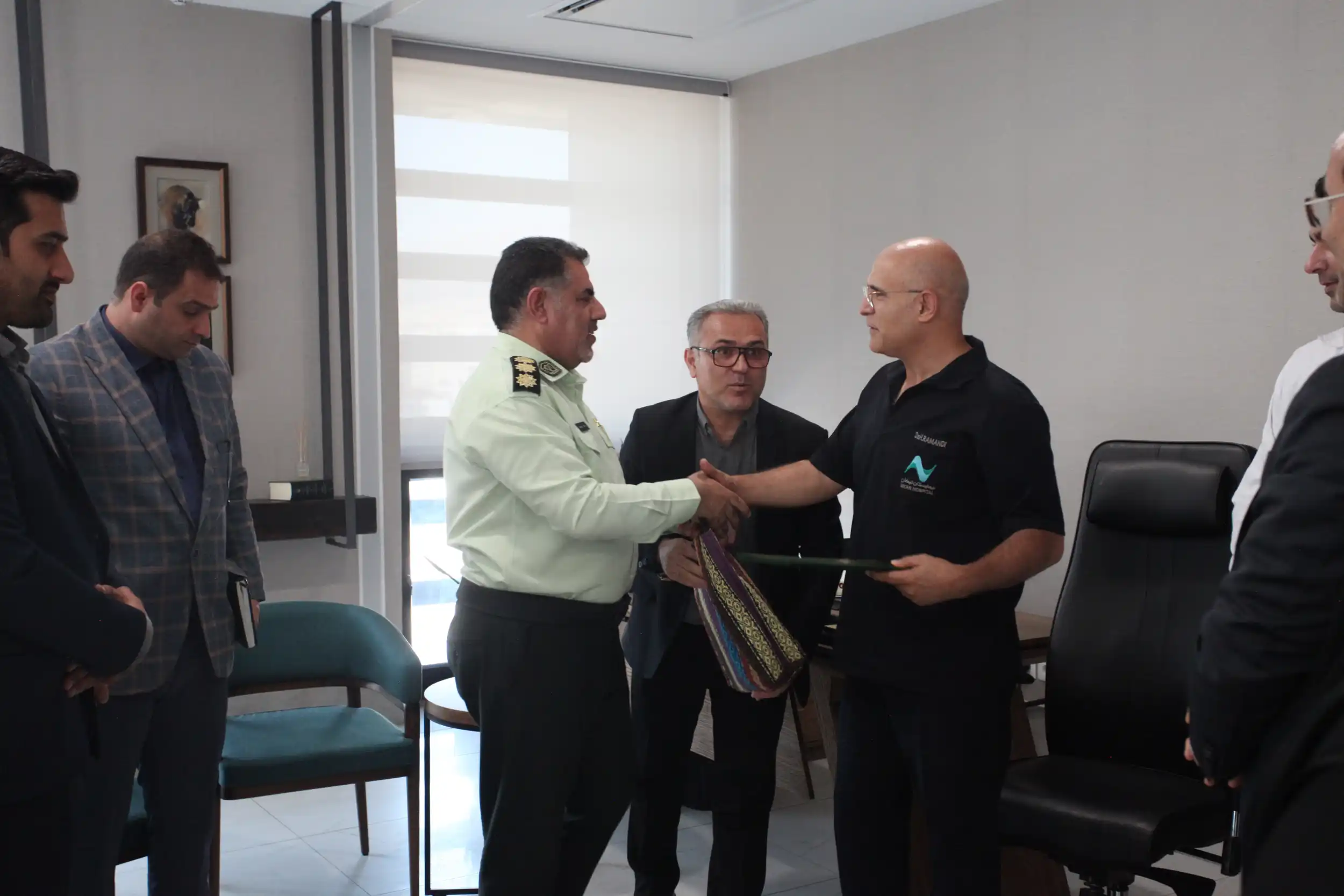 میهمانان با دکتر حسین رامندی، رئیس محترم بیمارستان نیکان سپید، به گفتوگو پرداختند و ضمن تبریک روز پزشک، از خدمات ارزشمند کادر درمان قدردانی کردند.
