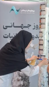به مناسبت روز جهانی بدون دخانیات و در راستای هفته ملی مبارزه با دخانیات، مراسمی فرهنگی در بیمارستان برگزار شد. در این برنامه، با یک بازی سهمرحلهای خلاقانه، پیامهای آموزشی درباره مضرات دخانیات به شکلی جذاب منتقل شد. شرکتکنندگان ابتدا با اسکن یک QR کد، ویدئویی آموزشی درباره عوارض سیگار مشاهده کردند. سپس با پاسخ به سوالاتی در قالب کارتهای جایخالی، آموختههای خود را مرور کردند و در مرحله پایانی، کارتها را به ماکت یک سیگار بزرگ که برای این رویداد طراحی شده بود، الصاق کردند. این اقدام فرهنگی، گامی مؤثر در راستای ارتقای سلامت عمومی و ترویج سبک زندگی سالم به شمار میرود
